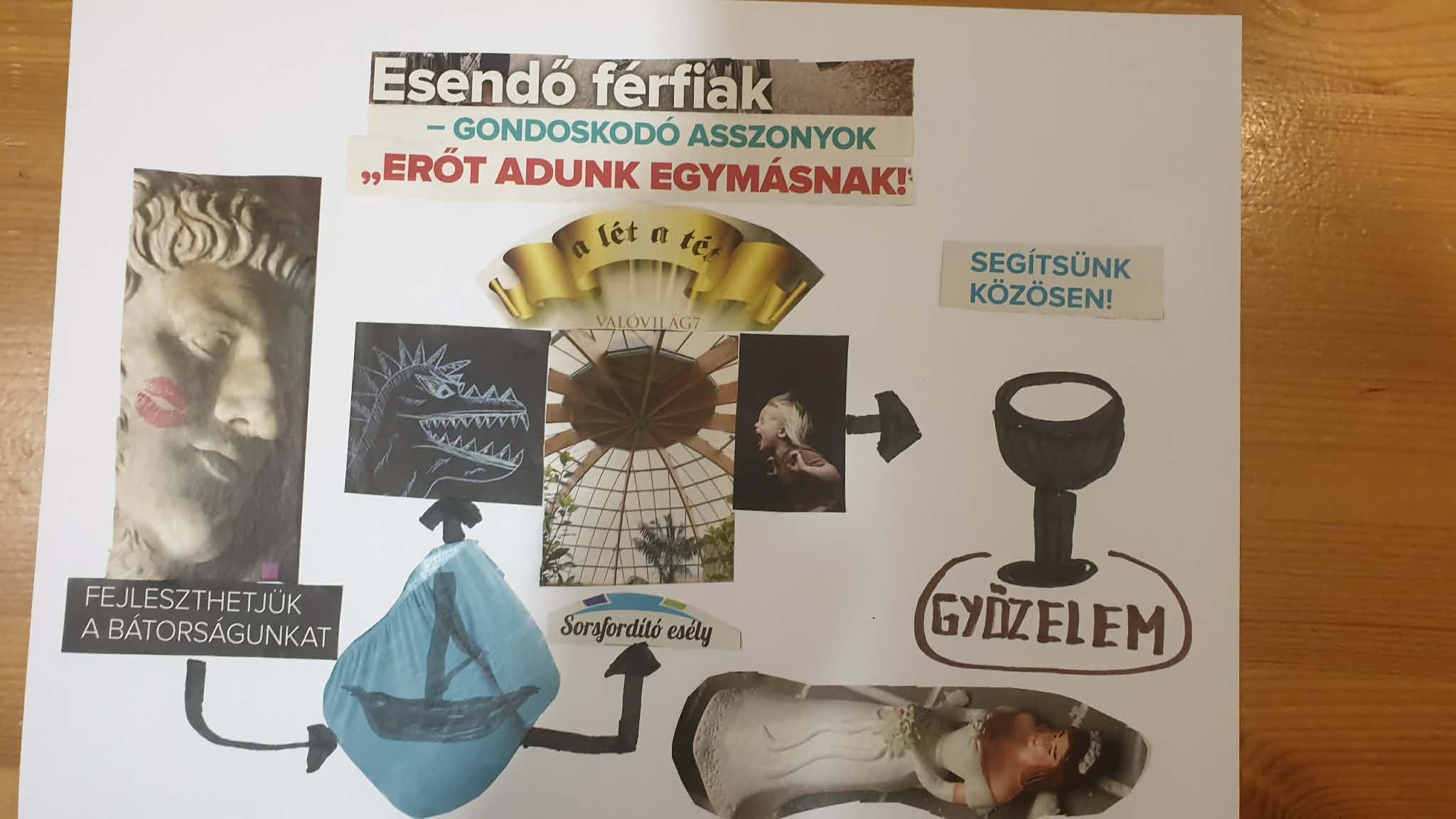 Az est folytatásában az asztaltársaságok a fenti három szimbólum mentén folytatták a beszélgetést, sőt még a kreativitásukat is próbára tehették egy-egy montázs készítésével. Az újságkivágásokkal, képekkel és szövegekkel tarkított montázsokkal azt a közös elképzeléstjelenítették meg a résztvevők, hogy miben látják a nehézségek megoldását.