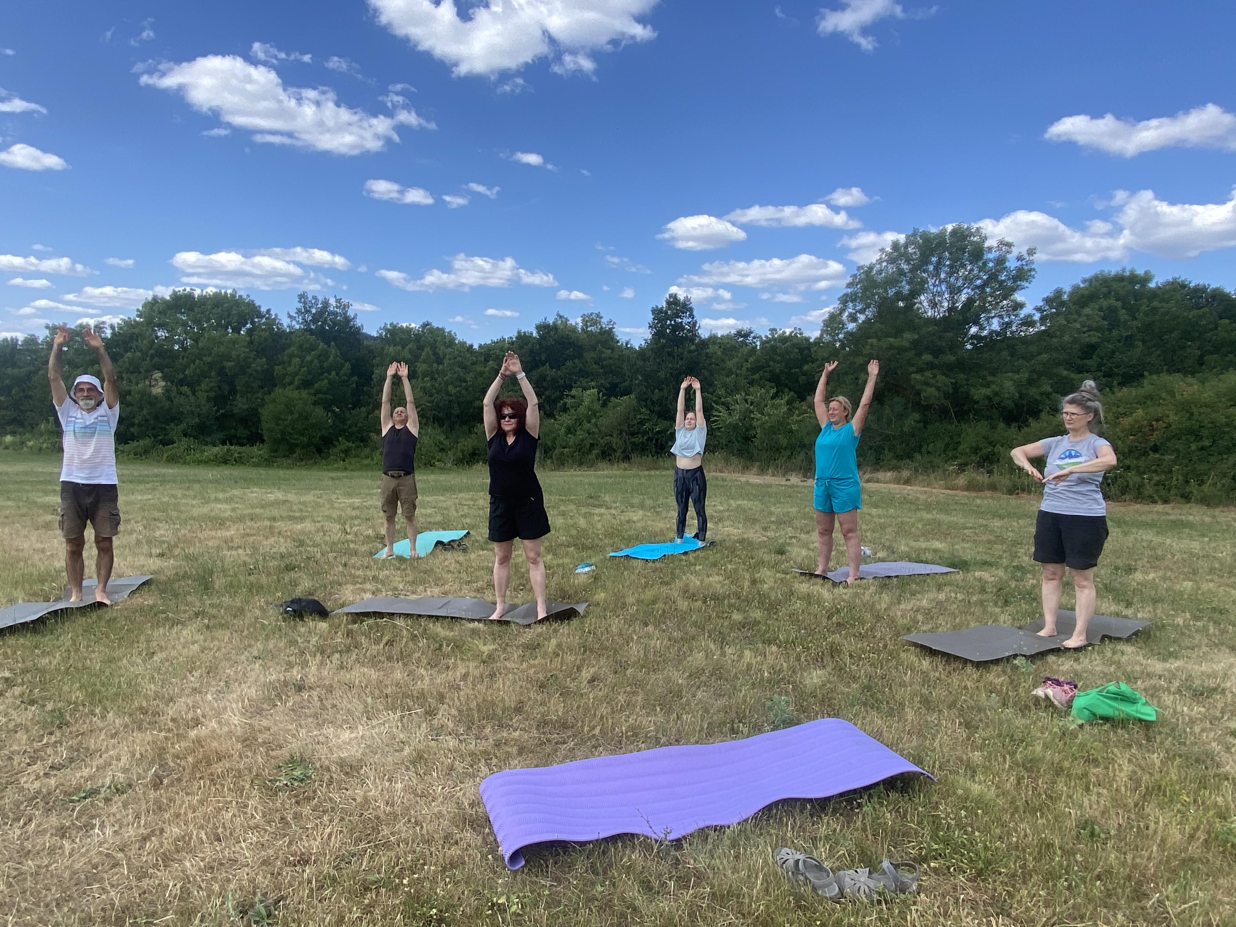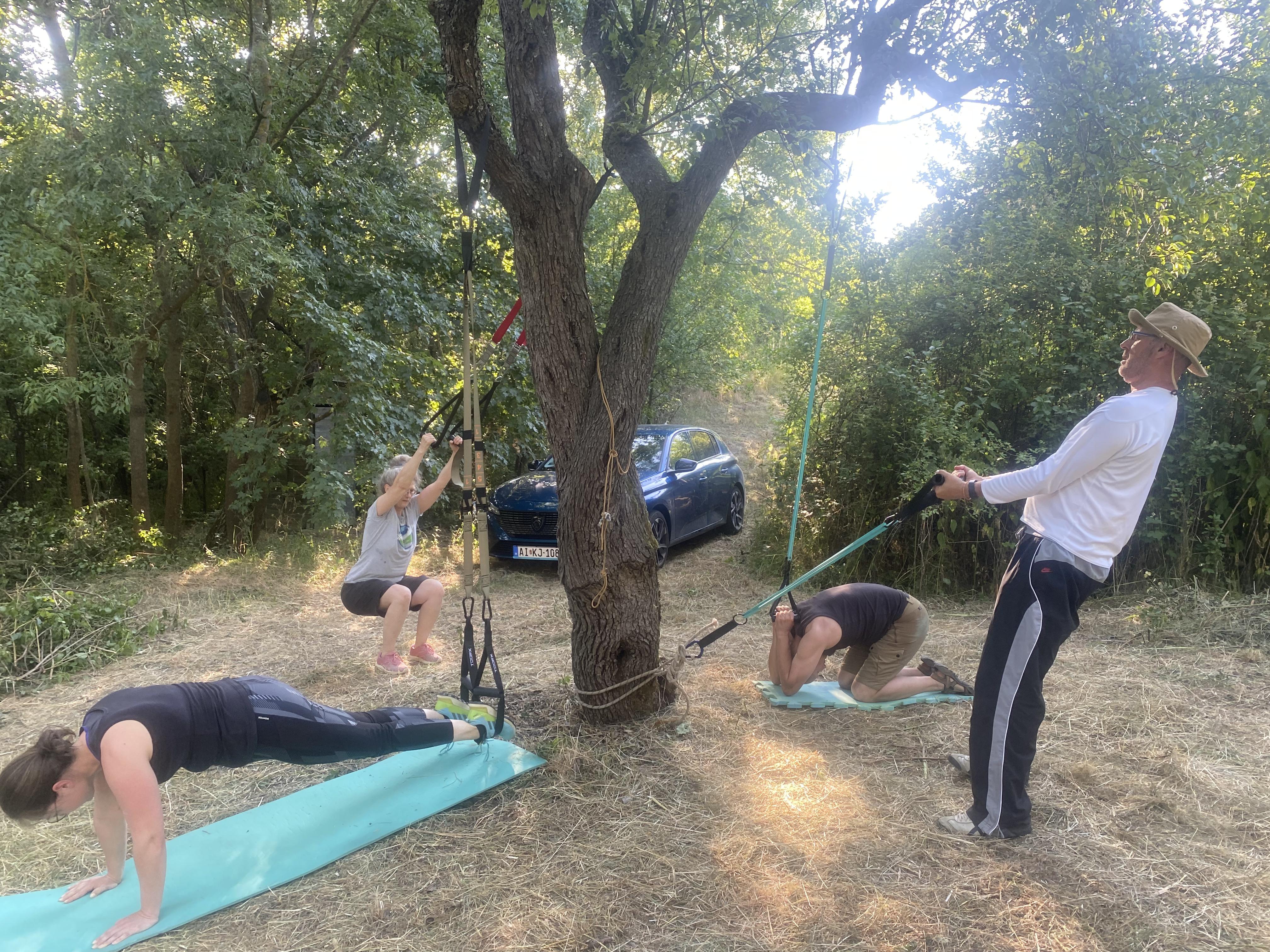 Az új, szabadtéri edzőteremben mindenki saját képességeihez igazíthatta az elvégzett gyakorlatok számát, nehézségét. Az íjászatot erősítő foglalkozás követte, végül a jelenlévők az egész napot alapos, minden izomcsoportra kiterjedő nyújtással, felfrissülten zárták.