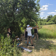 A magyarországi Új Akropolisz vidéki sportnapot rendezett a tagok számára. Már a terep közös előkészítése is alaposan átmozgatta a szervezőket, ahogy kialakították az íjászpályát, valamint a helyi körtefák alatt a gumiköteles erősítésre használható munkaállomást.